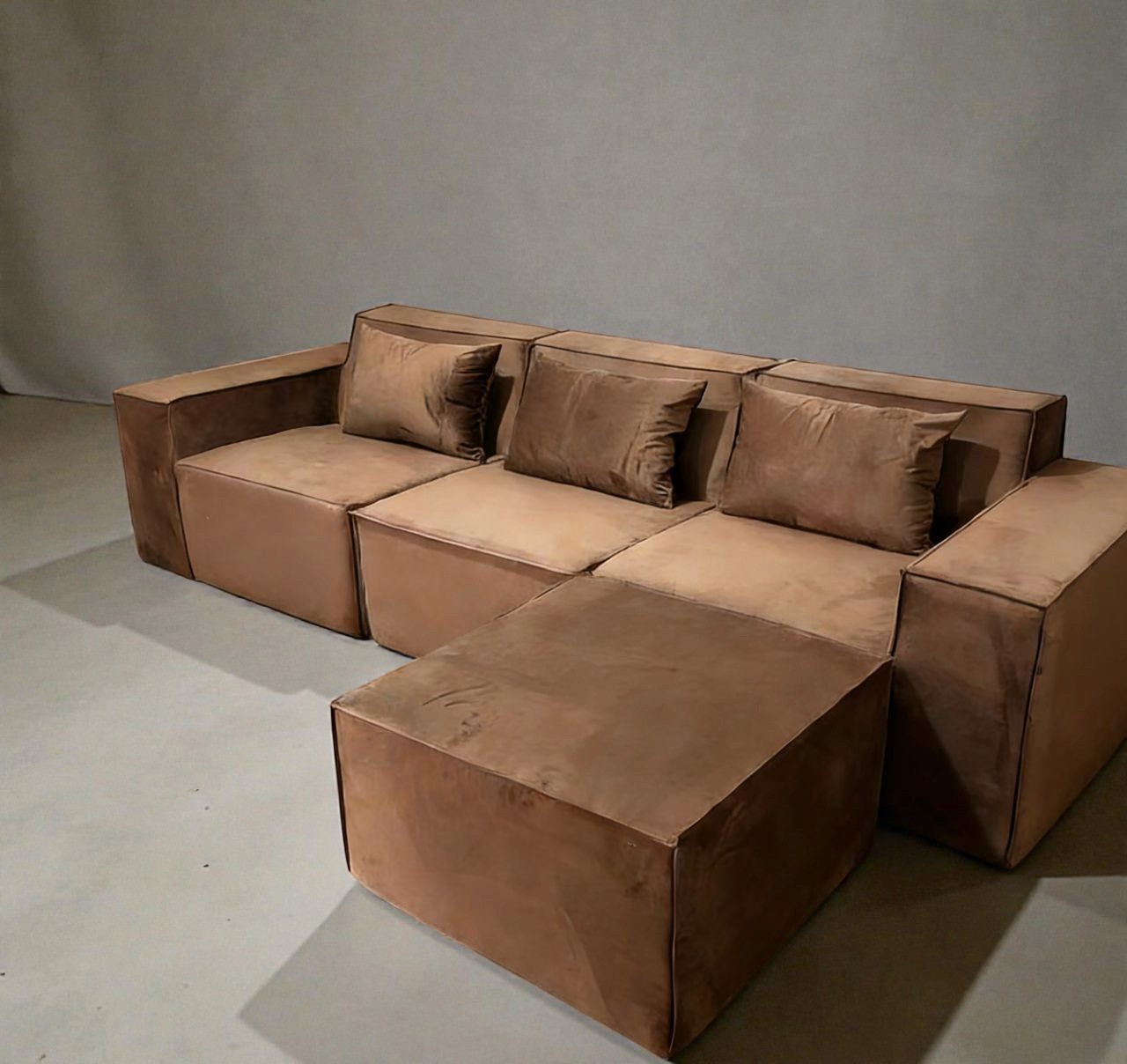 Fully Modular Design allowing complete reconfiguration Compression Sofa System for structured support and comfort Prestigious Velvet Upholstery with a soft, luxurious finish L-Shaped Configuration that can be rearranged as needed Designed for both comfort and visual impact